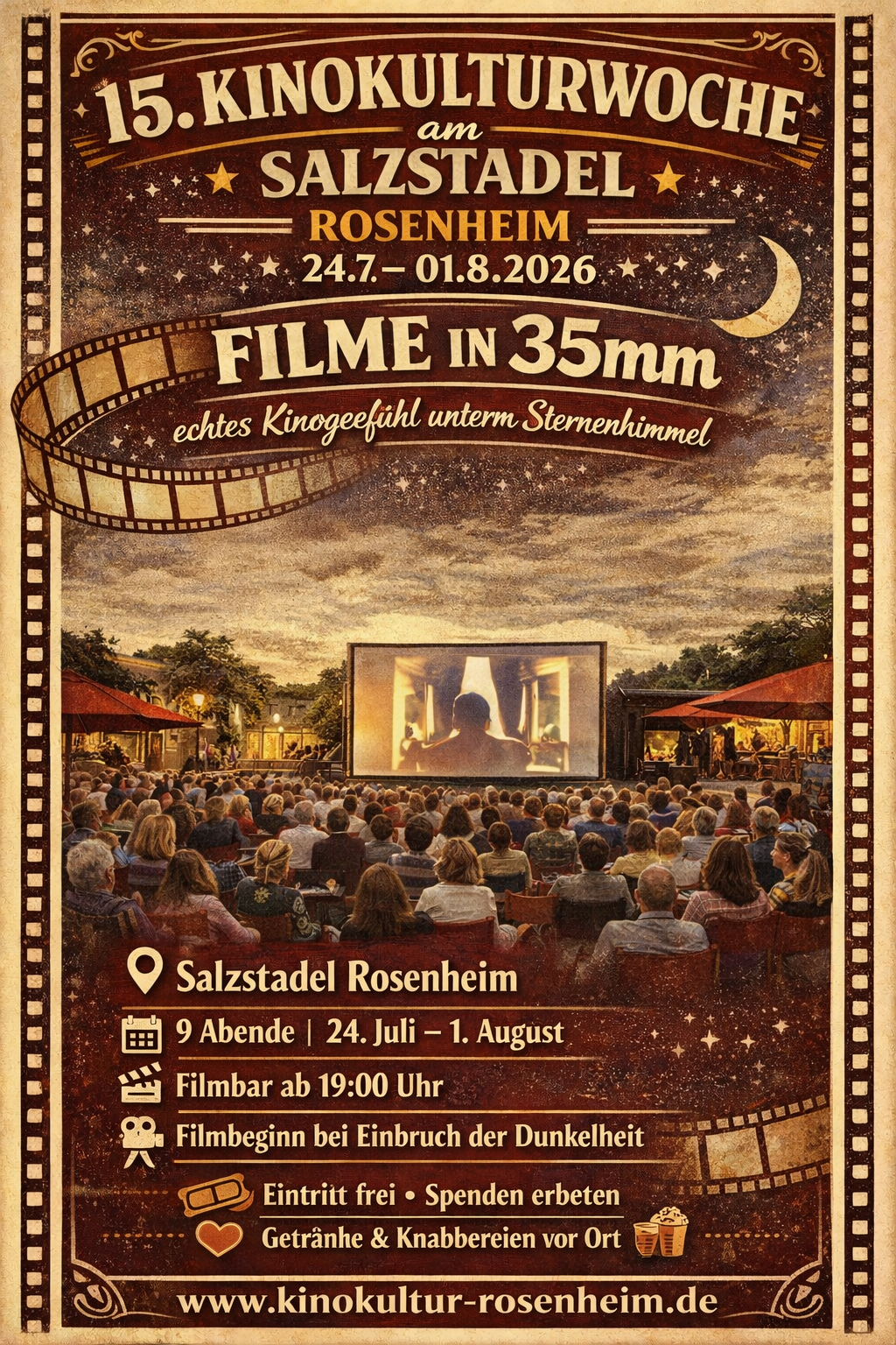 Vom 24.07. bis 01.08.2026 findet die Kinokulturwoche am Salzstadel Rosenheim bereits zum 15. Mal statt – neun Abende ganz im […]